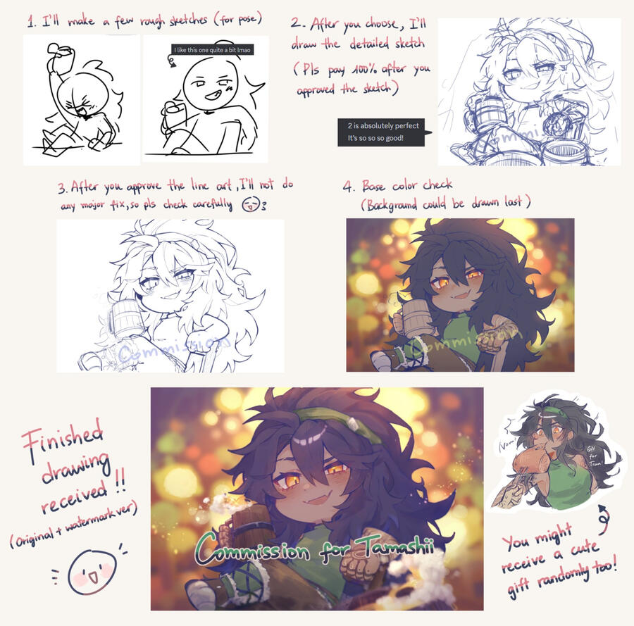 When it is your turn, I'll notify you ᕕ( ᐛ )ᕗPls pay 100% after the agreed rough sketch.